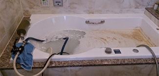 独自開発の技術と機材を使って、風呂釜、追いだき配管の洗浄を行います。従来の洗浄では落ちない配管の中の雑菌(バイオフィルム)、汚れまで綺麗に除去します。